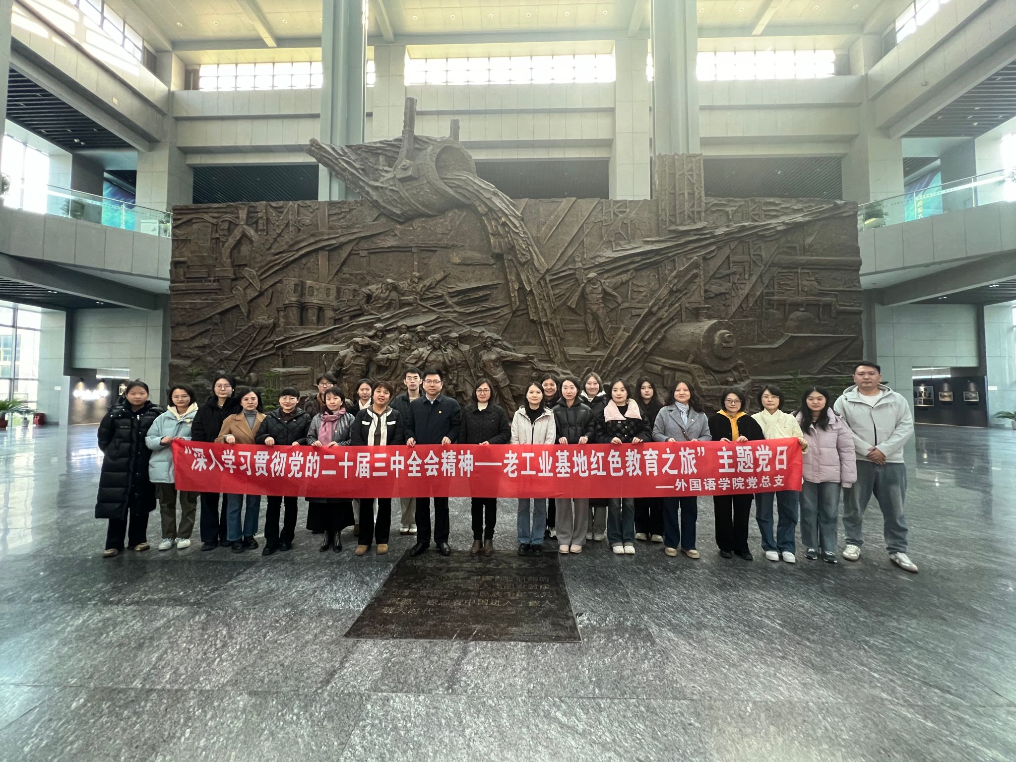 為深入學(xué)習(xí)領(lǐng)會黨的二十屆三中全會精神,11月20日,外國語學(xué)院黨總支組織全體教職工及學(xué)生黨員參觀中國工業(yè)博物館,開展“深入學(xué)習(xí)貫徹黨的二十屆三中全會精神——老工業(yè)基地紅色教育之旅”主題黨日系列活動。