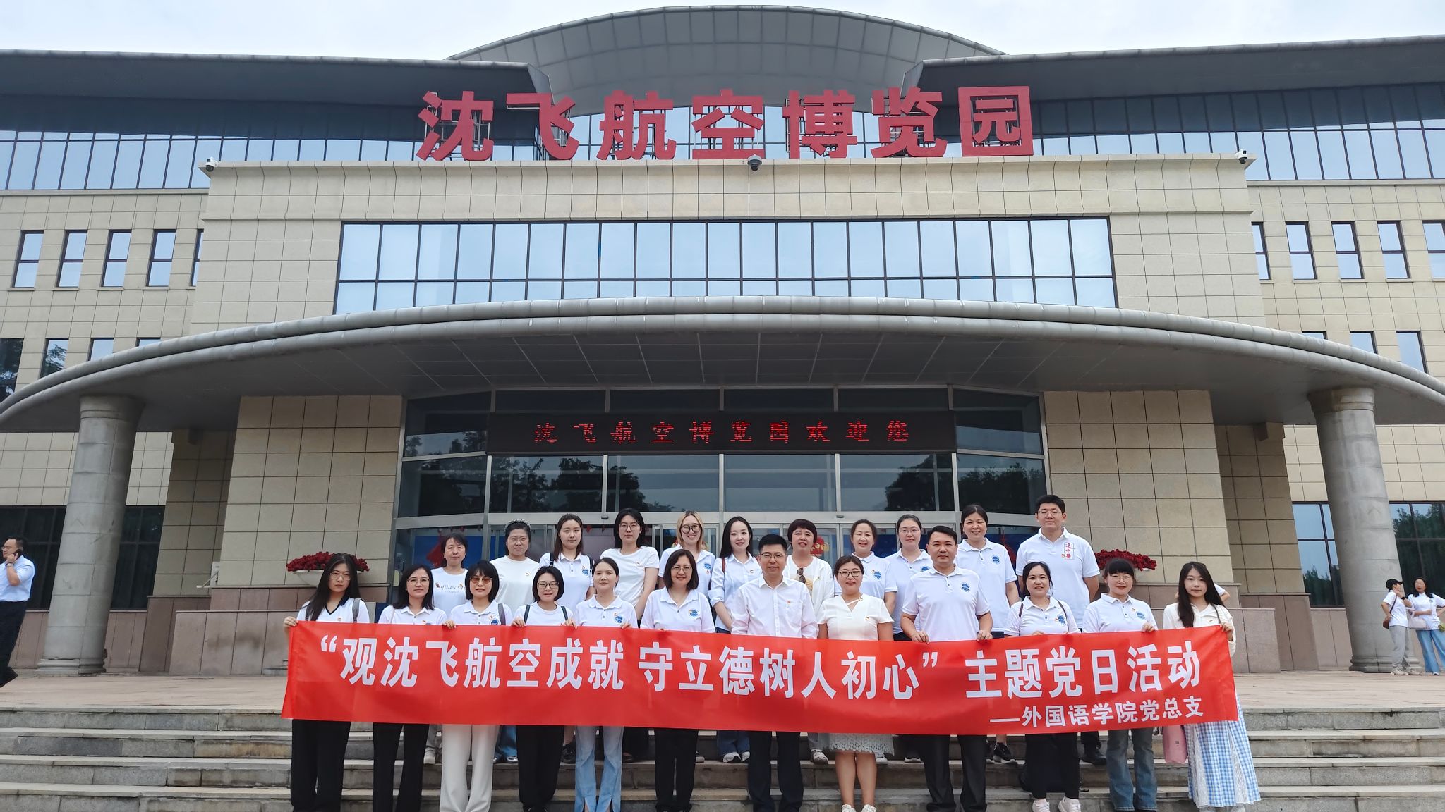 7月17日,外國語學(xué)院黨總支開展“觀沈飛航空成就 守立德樹人初心”主題黨日活動(dòng),學(xué)院領(lǐng)導(dǎo)班子帶領(lǐng)全體教師和學(xué)生黨員共同參觀沈飛航空博覽園。