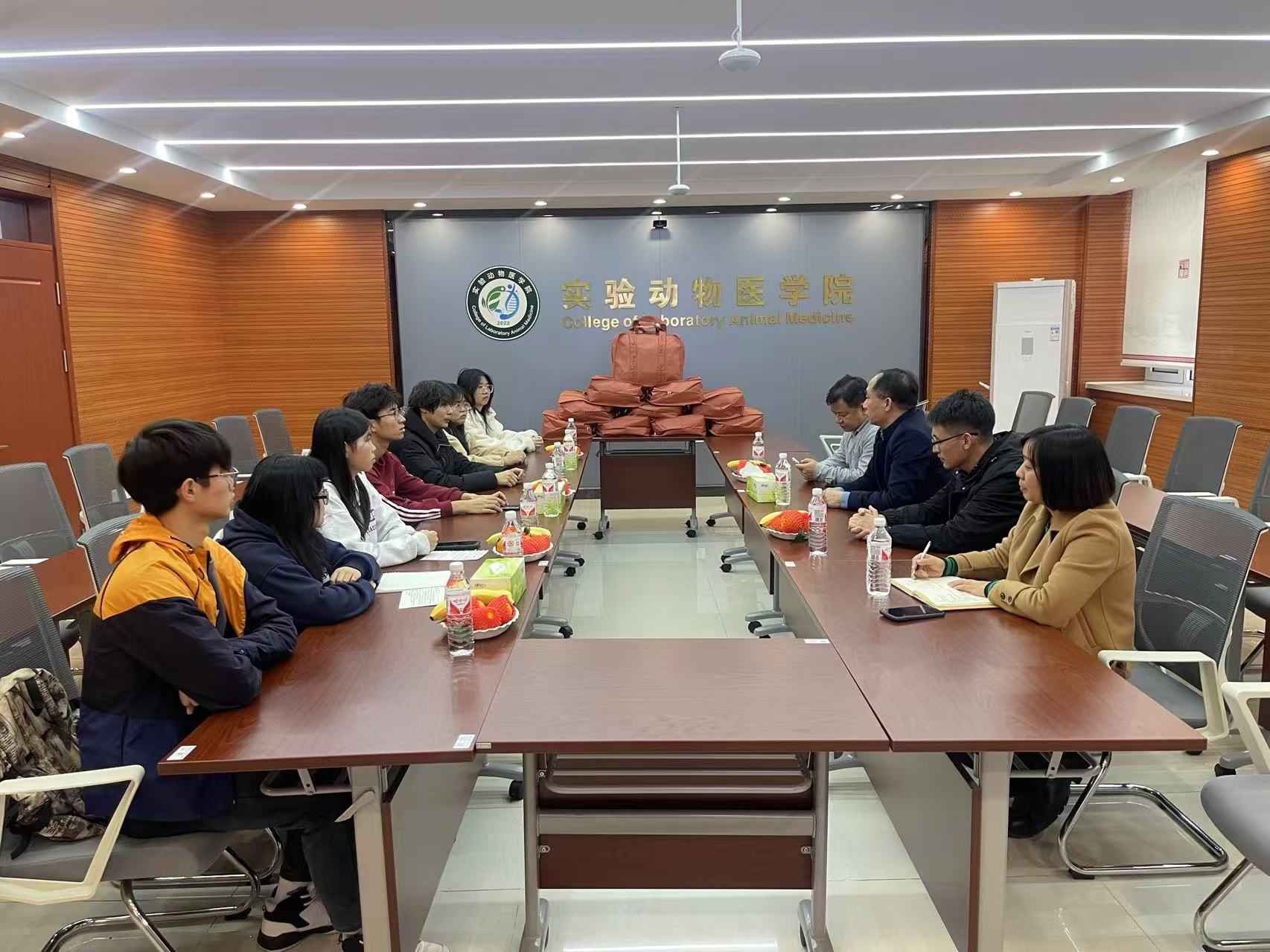 為落實(shí)立德樹(shù)人根本任務(wù),踐行資助育人理念,為學(xué)生辦實(shí)事、辦好事,提升資助育人工作實(shí)效,10月30日下午,學(xué)院開(kāi)展“入冬送溫暖 共筑師生情”主題座談會(huì)。實(shí)驗(yàn)動(dòng)物醫(yī)學(xué)院院長(zhǎng)王春田,教學(xué)實(shí)驗(yàn)中心與實(shí)驗(yàn)動(dòng)物醫(yī)學(xué)院黨總支書(shū)記任平、黨總支副書(shū)記周陽(yáng),實(shí)驗(yàn)動(dòng)物醫(yī)學(xué)院副院長(zhǎng)吳運(yùn)譜,實(shí)驗(yàn)動(dòng)物學(xué)專業(yè)學(xué)生代表共同參加座談會(huì)。