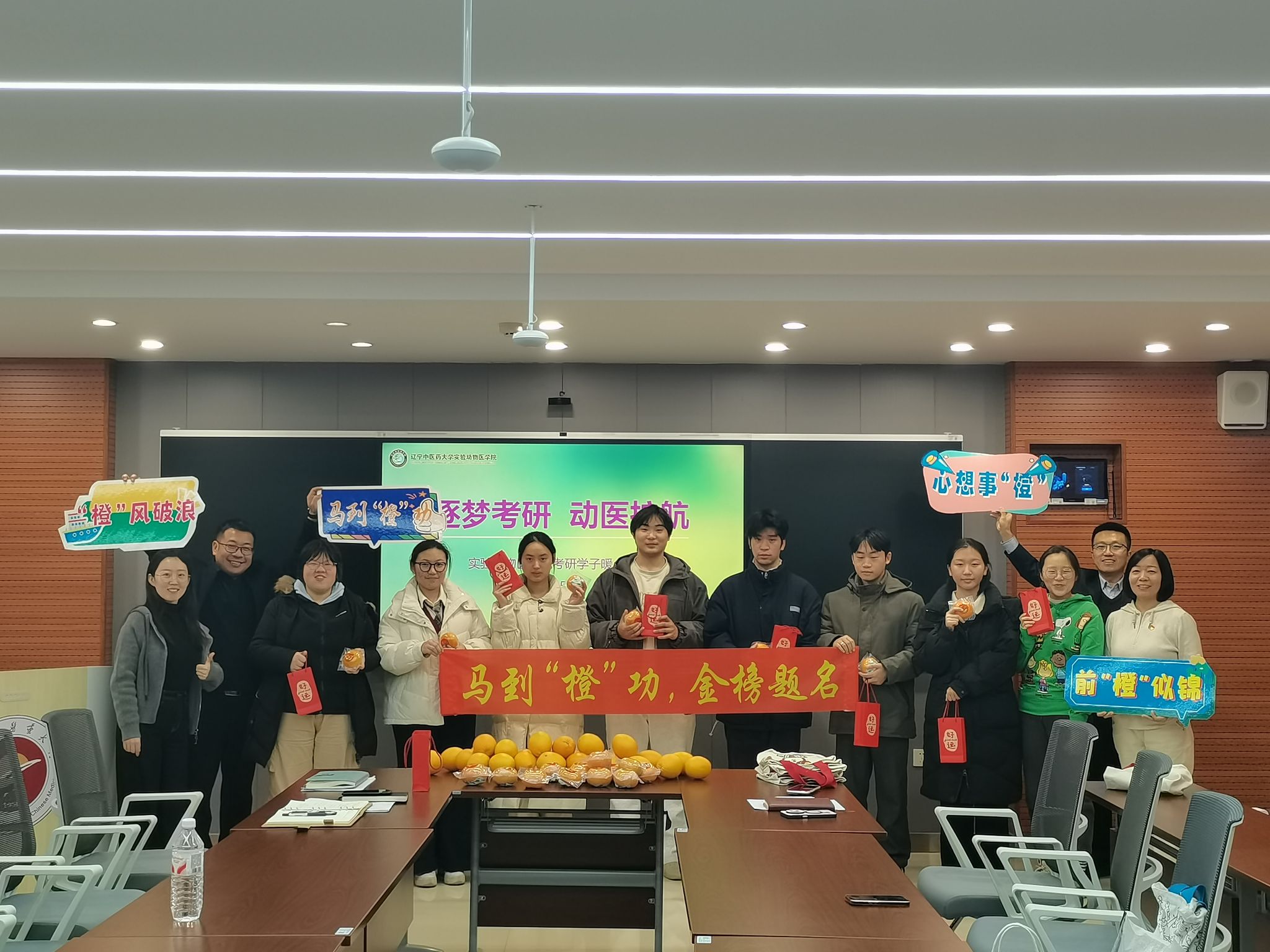 為助力學(xué)院考研學(xué)子緩解考前壓力,以良好心態(tài)奔赴考場(chǎng),12月18日,實(shí)驗(yàn)動(dòng)物醫(yī)學(xué)院精心組織了“逐夢(mèng)考研、動(dòng)醫(yī)護(hù)航”暖心助考活動(dòng)。學(xué)院院長(zhǎng)趙相軒、黨總支書記崔運(yùn)浩,副書記周陽,輔導(dǎo)員蘇笑寧共同為考研學(xué)子續(xù)航賦能。
