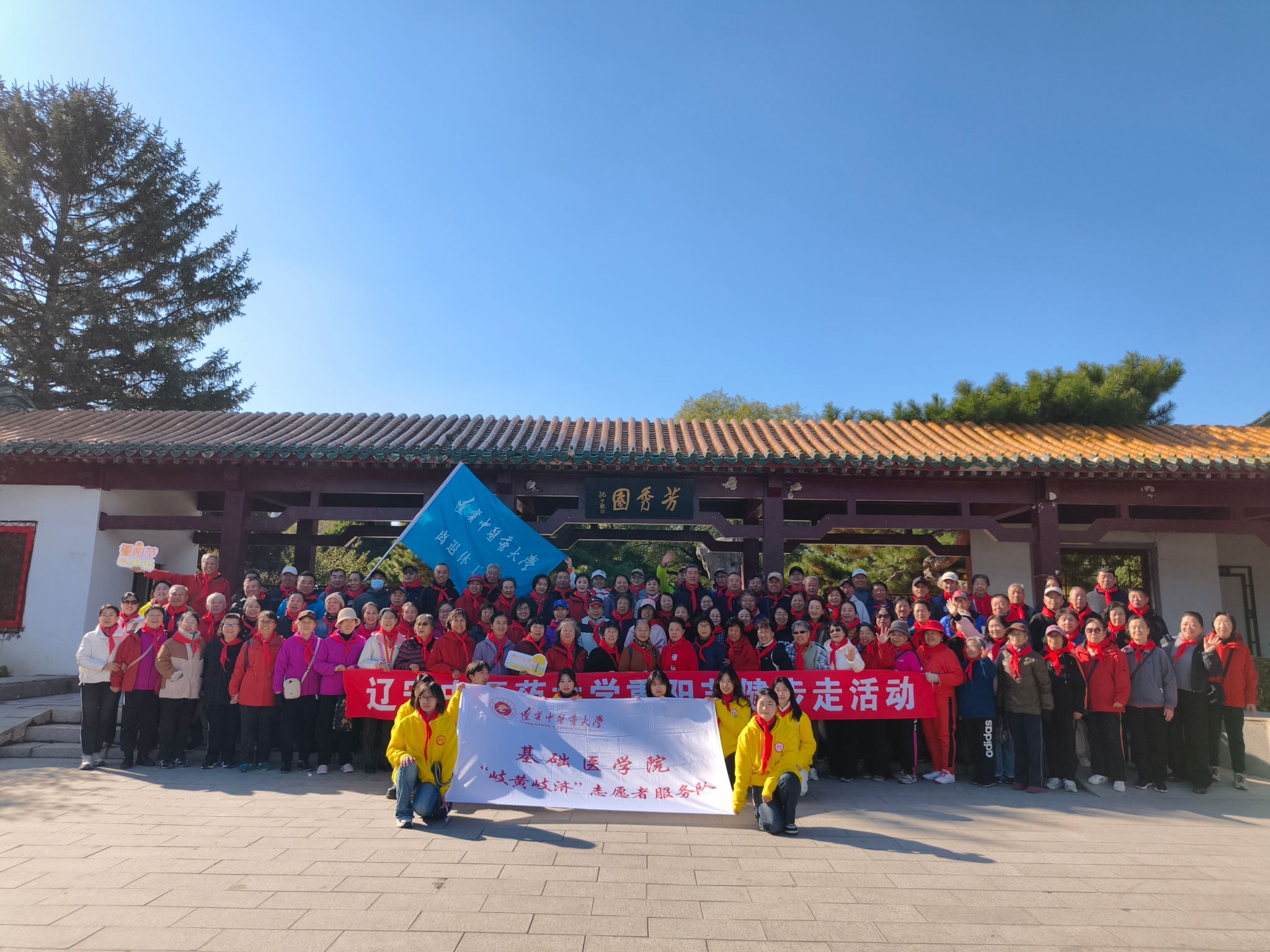 活動現(xiàn)場,老同志們意氣風發(fā)、興致高昂、步履矯健。秋日溫暖的陽光灑在湖面上,也映照在每一位老同志洋溢著幸福與活力的笑臉上。沿途,基礎醫(yī)學院學生志愿者們的熱情服務,讓老同志們倍感溫暖。