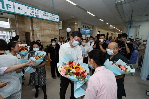 調(diào)研組深入臨床科室了解情況聽取意見,并向醫(yī)務(wù)工作者們致以節(jié)日問候和美好祝愿,對(duì)國醫(yī)大師張靜生,全國名中醫(yī)田維柱、楊積武和田振國進(jìn)行了慰問。黃璐琦強(qiáng)調(diào),廣大醫(yī)務(wù)工作者要堅(jiān)持以習(xí)近平新時(shí)代中國特色社會(huì)主義思想為指導(dǎo),弘揚(yáng)“敬佑生命、救死扶傷、甘于奉獻(xiàn)、大愛無疆”的職業(yè)精神,勤練技能、苦修仁術(shù),自覺做“大醫(yī)精誠”的踐行者、傳承者、弘揚(yáng)者。