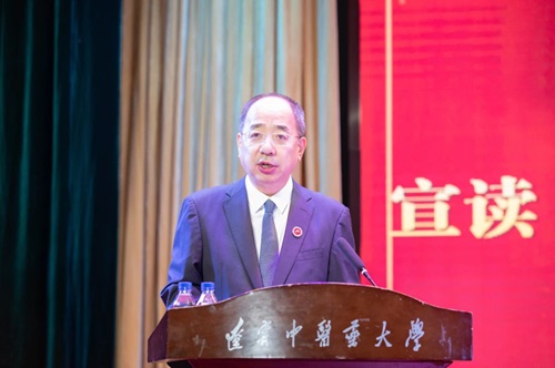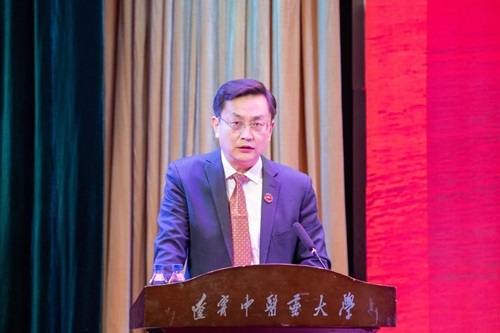 楊鶇祥宣讀2024年學校建設發(fā)展十件大事,與會人員共同回顧了2024年學校建設發(fā)展歷程,重溫精彩難忘時刻。一是中國共產黨遼寧中醫(yī)藥大學第三次代表大會勝利召開;二是扎實開展黨紀學習教育,為學校高質量發(fā)展提供堅強紀律保障;三是高質量完成本科教育教學審核評估,教育教學成果豐碩;四是學校成為遼寧省人民政府與國家中醫(yī)藥管理局共建高校;五是錨定“雙一流”目標,4個學科連續(xù)兩輪入選“雙一流”建設學科;六是大力推進優(yōu)秀科技人才隊伍建設,科技創(chuàng)新成果顯著;七是堅持引育并舉,人才工作再創(chuàng)新績;八是創(chuàng)新舉辦中醫(yī)藥文化夜市及膏方節(jié),文化育人碩果累累;九是持續(xù)推動中醫(yī)藥海外推廣傳播,國際交流合作亮點紛呈;十是用心護佑人民群眾健康福祉,醫(yī)療服務提質升效。