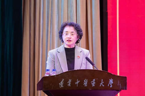 呂曉東代表學校黨委致新年賀詞,向全校師生、離退休老同志及海內外校友致以新年的祝福,向省委省政府、教育廳、衛(wèi)健委等有關部門對學校的關懷和支持致以衷心的感謝,向長期關心和幫助學校發(fā)展的社會各界朋友致以美好的祝愿。她指出,2024年遼寧中醫(yī)人凝心聚力、佳績頻傳,譜寫了學校建設發(fā)展的新篇章。這一年,學校不斷夯實黨建工作基礎,提高站位,培根鑄魂;首創(chuàng)的中醫(yī)藥文化夜市,轟動全國、帶動遼寧;內涵建設水平日益攀升,影響力和知名度不斷擴大;發(fā)揮中醫(yī)藥文化優(yōu)勢,著力打造了具有遼寧中醫(yī)特色的文化校園、平安校園、文明校園、和諧校園。