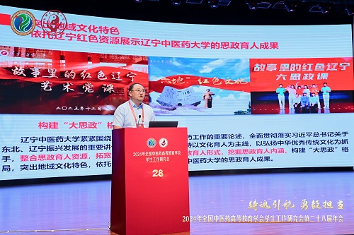 在大會(huì)主題分享環(huán)節(jié),劉繼東圍繞我校開(kāi)展文化育人作工作報(bào)告,探討中醫(yī)藥高等教育行業(yè)思政教育與學(xué)生管理工作的經(jīng)驗(yàn)做法,為培養(yǎng)讓黨放心、愛(ài)國(guó)奉獻(xiàn)、擔(dān)當(dāng)民族復(fù)興重任的時(shí)代新人作出學(xué)生工作戰(zhàn)線的積極貢獻(xiàn)。