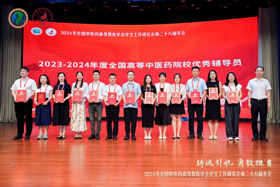 年會(huì)表彰了2023-2024年度優(yōu)秀輔導(dǎo)員、優(yōu)秀學(xué)生工作者,公布了10項(xiàng)學(xué)生思想政治教育特色成果獎(jiǎng)獲獎(jiǎng)?wù)撸约?024年學(xué)生工作研究會(huì)科研項(xiàng)目中標(biāo)名單與科研結(jié)題意見(jiàn)。我校魏鳴洋、林楠、王恒旭、延諾4人榮獲全國(guó)中醫(yī)藥高等院?!皟?yōu)秀輔導(dǎo)員”稱號(hào),張丹、周光、陳艷萍、何繼勇4人榮獲全國(guó)中醫(yī)藥高等院?!皟?yōu)秀學(xué)生工作者”稱號(hào),我校獲評(píng)全國(guó)中醫(yī)藥高等院校學(xué)生思想政治教育特色成果獎(jiǎng),同時(shí)有2位老師申報(bào)的課題獲批立項(xiàng)、2位老師的科研立項(xiàng)項(xiàng)目結(jié)題。