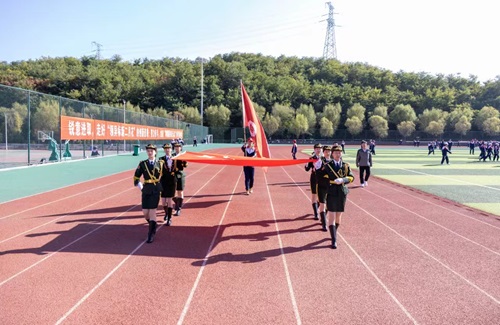 大會首先進(jìn)行了莊嚴(yán)的升國旗、升校旗、升?;掌靸x式。