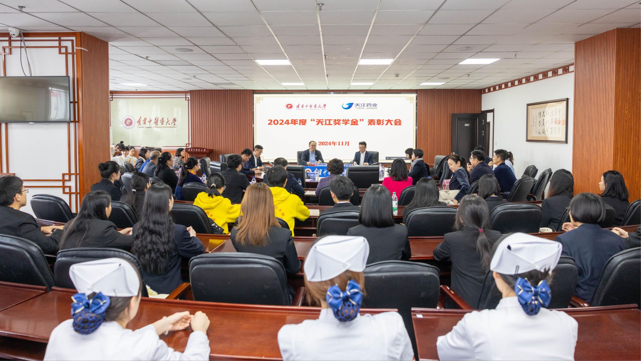 11月27日,遼寧中醫(yī)藥大學(xué)2024年度“天江獎(jiǎng)學(xué)金”表彰大會(huì)在沈陽校區(qū)舉辦。學(xué)校黨委副書記劉繼東、國藥集團(tuán)天江藥業(yè)有限公司華北分公司總經(jīng)理王杰出席會(huì)議。
