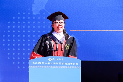 呂曉東為獲得學(xué)士學(xué)位的畢業(yè)生代表頒發(fā)學(xué)位證書,授予學(xué)位。