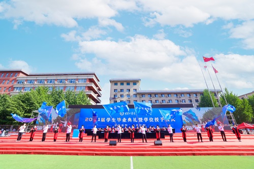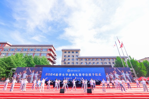 畢業(yè)典禮前,現(xiàn)場播放了2024屆畢業(yè)生對母校的祝福視頻,抒發(fā)了全體畢業(yè)生對母校的依依惜別之情和對未來的期許。暖場表演精彩紛呈,現(xiàn)場氣氛熱烈。《我愛你中國》《離別開出花》《燭光里的媽媽》《真心英雄》《光陰的故事》《上春山》......熟悉的旋律激蕩起同學(xué)們對大學(xué)時光的美好回憶和深厚感情。師生們動感十足的舞蹈、滿懷深情的祝福,贏得現(xiàn)場陣陣掌聲和喝彩。2024屆畢業(yè)生相聚一堂,互道珍重,意氣風(fēng)發(fā),畢業(yè)典禮在嘹亮的校歌聲中正式開始。