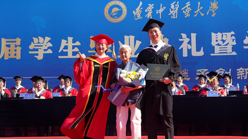 在今年的畢業(yè)典禮上,學(xué)校首屆本科畢業(yè)生、耄耋老人張秀妍在畢業(yè)60年之際,從加拿大返回祖國、重回母校,共同為其孫子、國際教育學(xué)院本科畢業(yè)生孫煦林撥蘇授位。