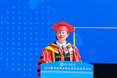 畢業(yè)典禮現(xiàn)場,呂曉東發(fā)表題為《以青春之名,奔向閃光的明天》的致辭,深情回顧了學(xué)校建校至今取得的輝煌成績,熱情贊揚了一代代遼寧中醫(yī)人接續(xù)奮斗體現(xiàn)出的青春追求和青春擔(dān)當(dāng)。