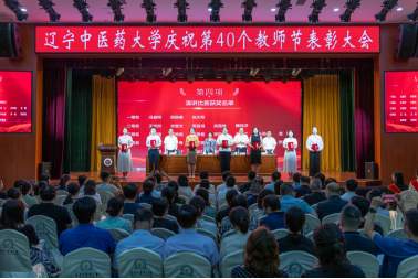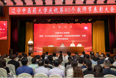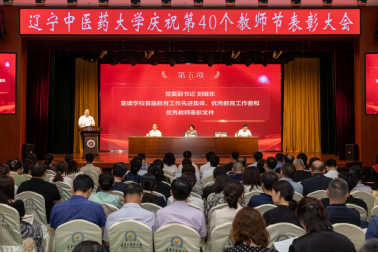 9月4日,遼寧中醫(yī)藥大學(xué)慶祝第40個教師節(jié)表彰大會在大學(xué)生活動中心舉行。學(xué)校領(lǐng)導(dǎo),各單位、各部門副處級及以上領(lǐng)導(dǎo)干部,全體受表彰人員代表和各單位教師代表等350余人參加大會,大會由副校長戴旭主持。