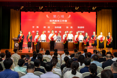 黨委副書記劉繼東宣讀了《關(guān)于表彰學(xué)校首屆教育工作先進集體、優(yōu)秀教育工作者和優(yōu)秀教師的決定》,學(xué)校領(lǐng)導(dǎo)為受表彰的10個“教育工作先進集體”、10名“優(yōu)秀教育工作者”和26名“優(yōu)秀教師”頒獎。