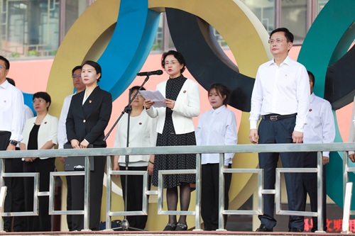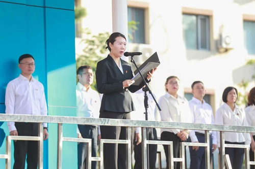 升旗儀式上,呂曉東發(fā)表講話。她首先向全體師生致以新學期的問候,指出在紀念中國人民抗日戰(zhàn)爭暨世界反法西斯戰(zhàn)爭勝利80周年的時間節(jié)點舉行升旗儀式,既是對歷史的緬懷,更是對未來的動員。呂曉東結合習近平總書記關于“中醫(yī)藥學是中國古代科學的瑰寶”的重要論述,強調青年一代既是中醫(yī)藥文化的“守護者”,更應是推動其走向世界的“傳播者”。她向同學們提出三點期望:一是堅定理想信念,厚植家國情懷,將個人成長與國家發(fā)展、民族復興緊密結合,做“聽黨話、跟黨走”的新時代青年;二是練就過硬本領,展現(xiàn)中醫(yī)藥擔當,珍惜在校時光,鉆研專業(yè)知識,成長為“懂經典、能創(chuàng)新、善傳承”的中醫(yī)藥人才;三是勇于擔當作為,矢志不渝奮斗,抓住中醫(yī)藥發(fā)展機遇,以“不懼歲月不懼風”的勇氣扛起傳承創(chuàng)新大旗,踐行“請黨放心,強國有我”的誓言。