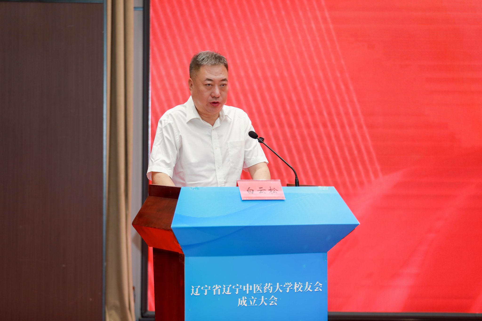 白云松宣讀《關(guān)于遼寧省遼寧中醫(yī)藥大學(xué)校友會成立登記的批復(fù)》,對遼寧省遼寧中醫(yī)藥大學(xué)校友會前期籌備工作表示肯定,并就成立后的工作提出要求和希望。