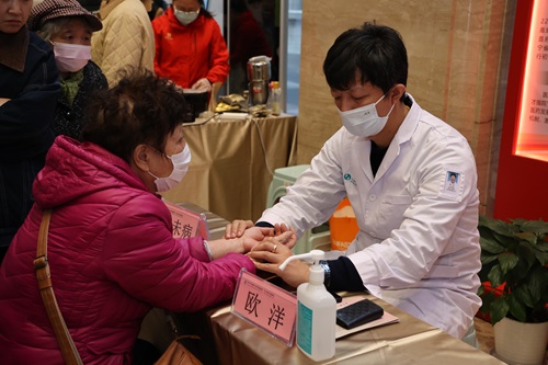 在義診區(qū),醫(yī)院各科室膏方門診專家齊聚一堂,專家們?yōu)榇蠹掖鹨山饣?,進行體質(zhì)辨識,免費提供專業(yè)的診治方案和實用的養(yǎng)生建議。