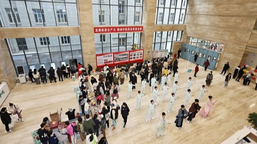 踏入活動現(xiàn)場,濃郁的中醫(yī)藥文化氛圍撲面而來。身著傳統(tǒng)漢服的醫(yī)護人員,將舞蹈與中醫(yī)文化巧妙融合,在歡快的音樂背景下,演繹精彩的《搖頭擺尾操》。