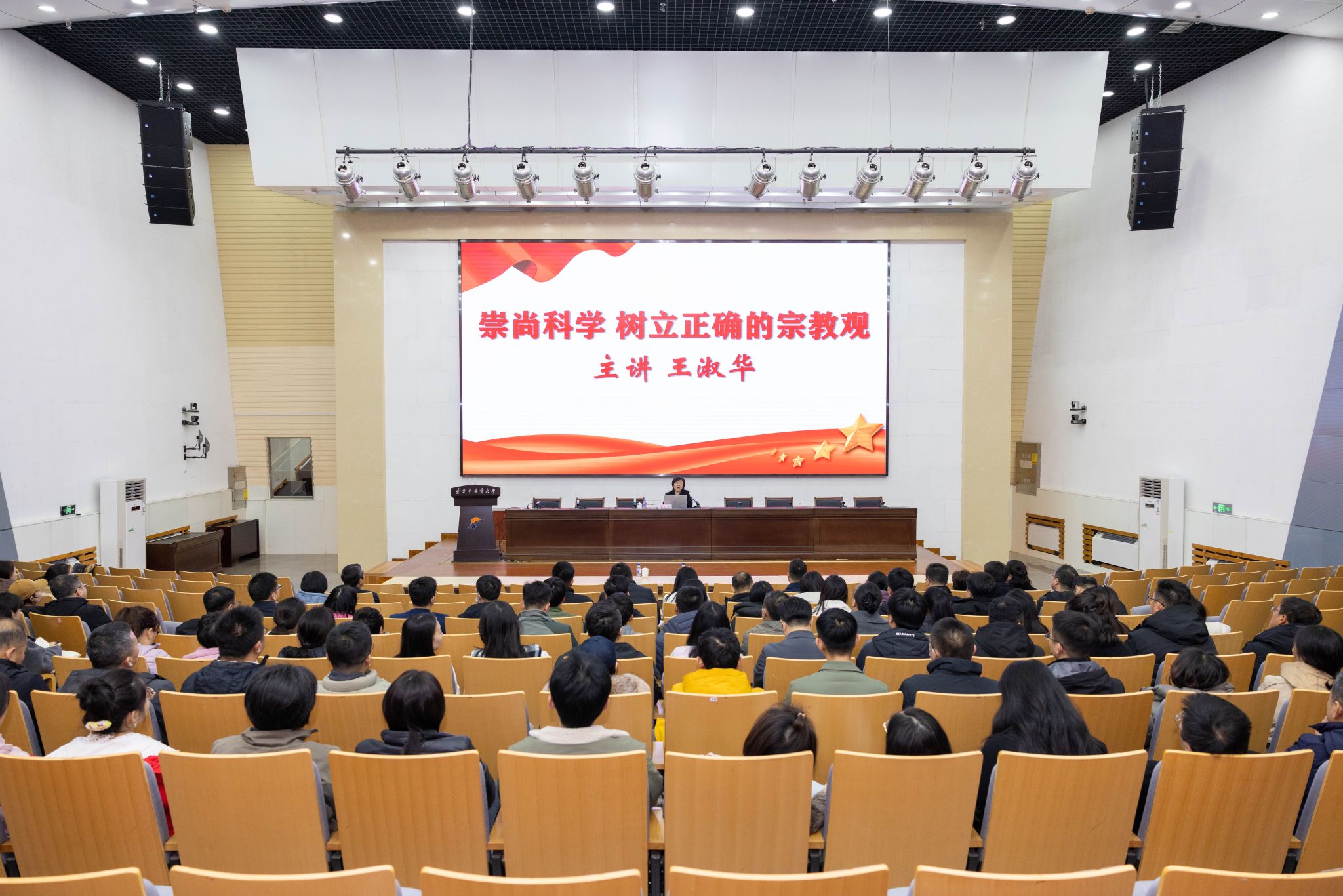 培訓(xùn)會由黨委統(tǒng)戰(zhàn)部部長崔廷寶主持,邀請中共遼寧省委黨校(遼寧行政學(xué)院、遼寧省社會主義學(xué)院)民族宗教教研部主任王淑華教授主講授課。王淑華以《崇尚科學(xué) 樹立正確的宗教觀》為題作了專題培訓(xùn)講座,從“樹立正確的宗教觀”“完整、準(zhǔn)確、全面貫徹黨的宗教信仰自由政策”“嚴(yán)密防范抵制校園傳教”三個(gè)方面,對馬克思主義宗教觀、黨的宗教工作基本方針進(jìn)行闡述和解讀。講座深入淺出,內(nèi)涵豐富,緊密結(jié)合高校工作實(shí)際,既有當(dāng)前宗教形勢分析,又有相關(guān)政策解讀,還有高校抵御和防范校園傳教滲透工作實(shí)務(wù)指導(dǎo),理論性、指導(dǎo)性和實(shí)用性較強(qiáng),為與會人員上了一堂精彩的大思政課。